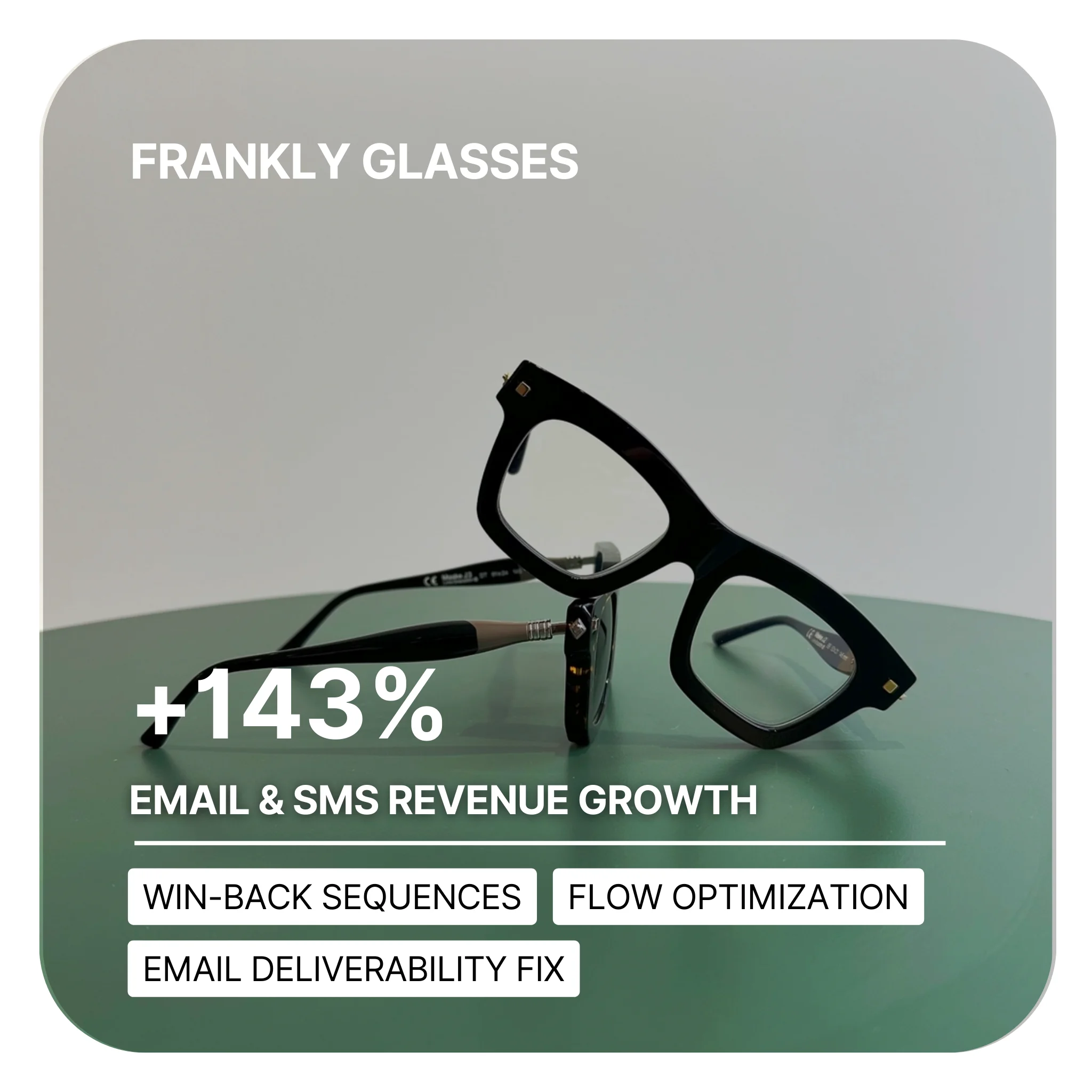 Frankly Glasses was leaving money on the table because they weren’t re-engaging past buyers effectively. Many of their emails ended up in spam or promotions folders, and they had no structured system for bringing lost customers back.